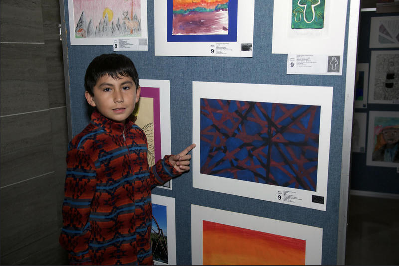 Tello V., 5th grade, won Honorable Mention in the Upper Elementary Art category. He also received a great collection of art supplies from Sargent Art. Tello's artwork was self-directed, incorporating his favorite colors, red and blue.