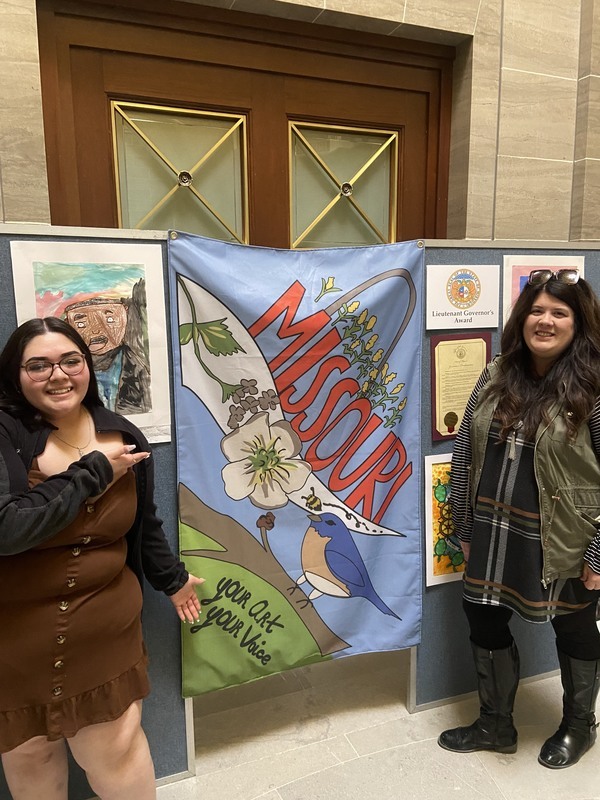 Missouri Lieutenant Mike Kehoe chose Brisa O. as the 2023 Youth Art Month flag winner, selecting her design from numerous entries. Her winning design was transformed into a flag to be displayed at the Youth Art Month Capitol Exhibit Recognition and Awards celebration.